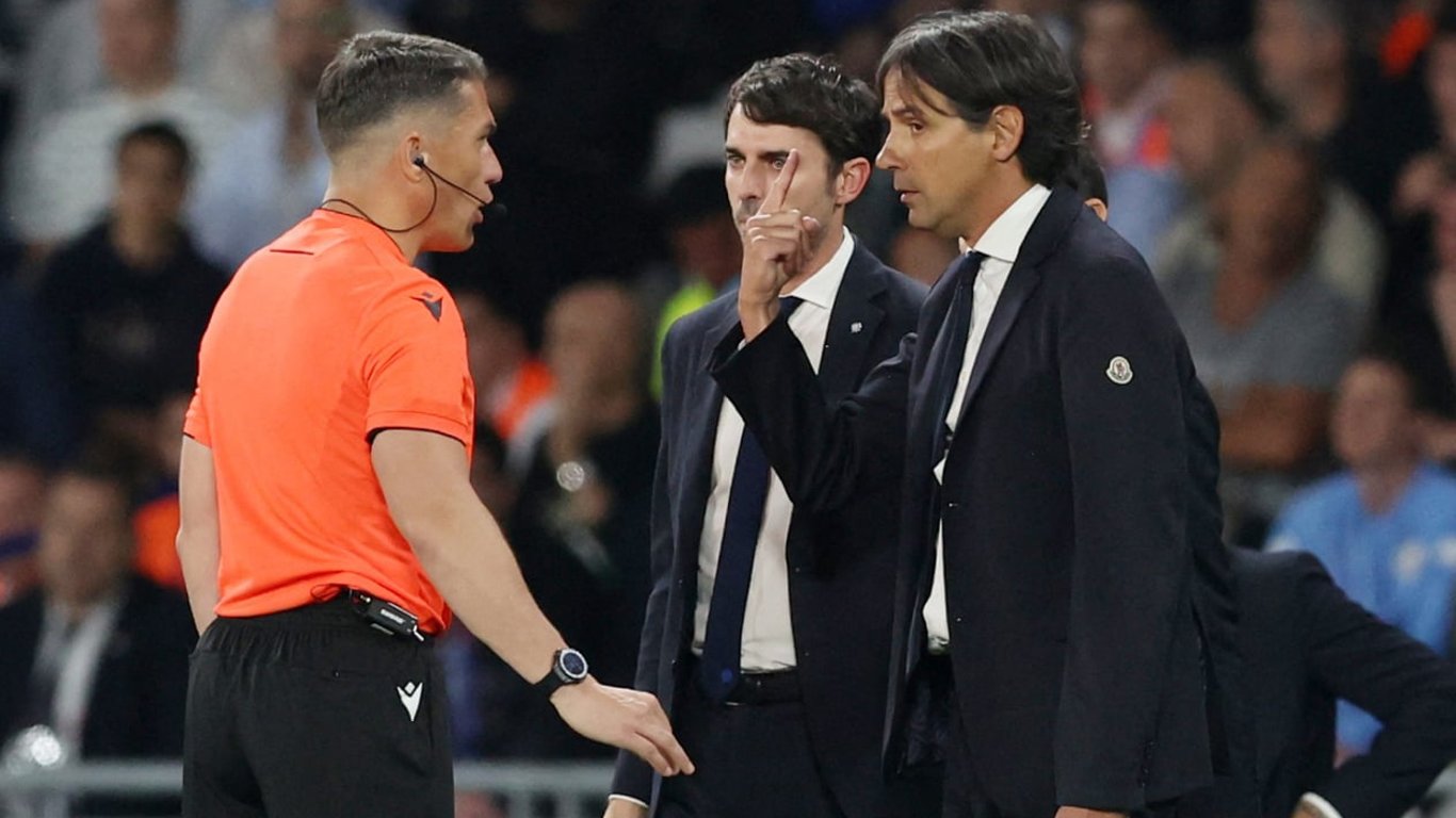 Симоне Индзаги спорит с арбитром. Фото: REUTERS/Murad Sezer