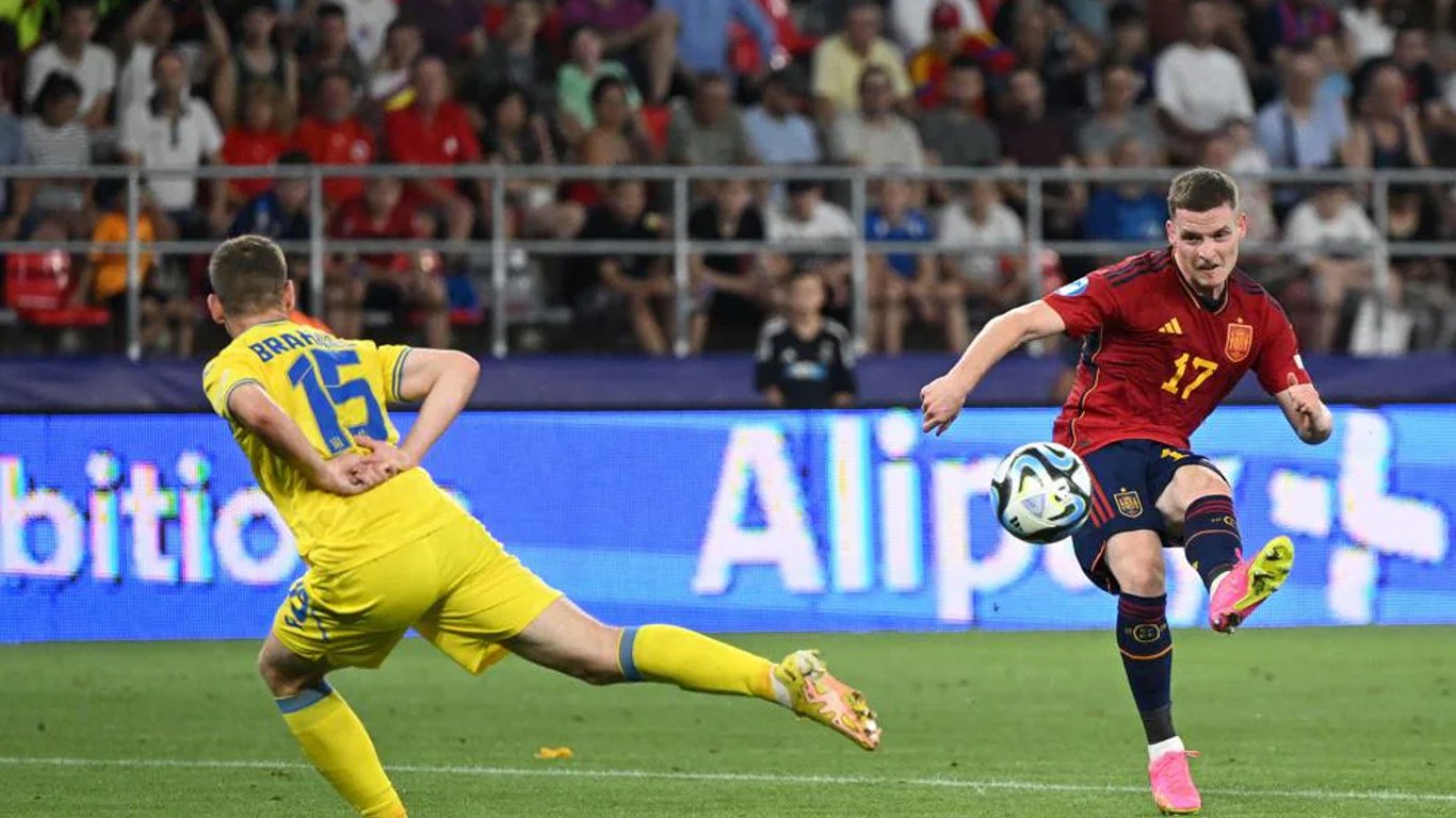 В начале матча испанцы начали активно контролировать мяч, но первыми забили украинцы. На 13-й минуте Михаил Мудрик после передачи Георгия Судакова сделал очередной прорыв через полполя и с лицевой линии сыграл в центр на Артема Бондаренко, который "расстрелял" голкипера Испании.