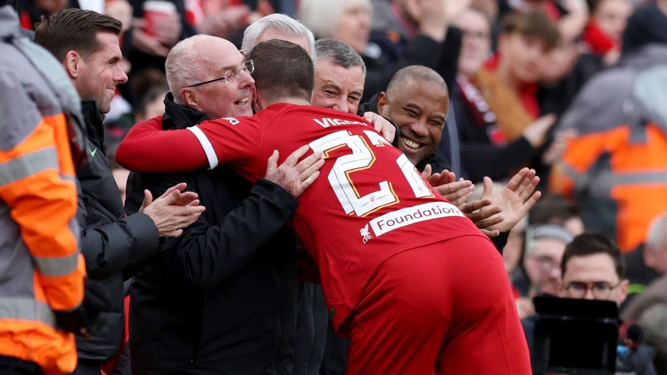 Товарищеский матч легенд "Ливерпуля" и "Аякса" на "Энфилде" завершился победой хозяев со счетом 4:2.