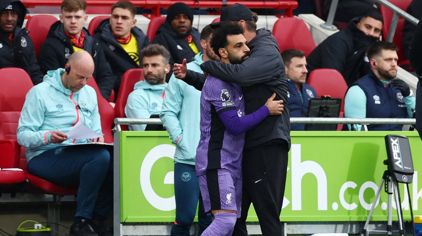 Клопп выпускает Салаха на поле. Фото: Reuters/Andrew Boyers