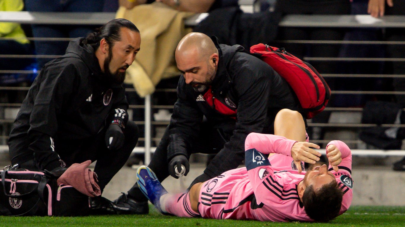 Месси оказывают помощь прямо на поле. Фото: Reuters/Steve Roberts