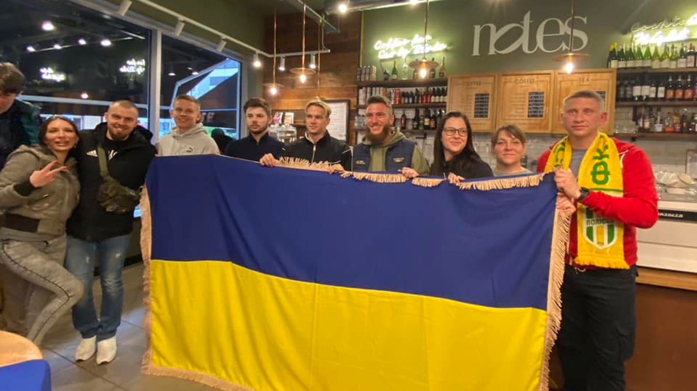 Олександр Зінченко залишає автограф на українському прапорі. Фото: Facebook/ukrainesportmedia